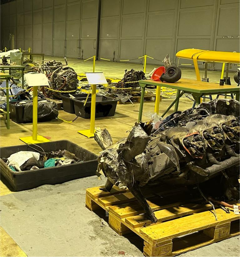 Viel abverlangt wird den Mitarbeitenden und Beauftragten bei ihren manchmal wochen-oder monatelangen Einsätzen. Physische und psychische Belastbarkeit und absolute Zuverlässigkeit sind neben hochspezialisiertem Fachwissen die Kernkompetenzen. Besonders eindrucksvoll war der Rundgang durch die Halle, in der Wrackteile untersucht werden. Hier werden tragische Ereignisse wie der Germanwings-Absturz in den französischen Alpen vor 10 Jahren akribisch aufgearbeitet, um daraus Erkenntnisse für